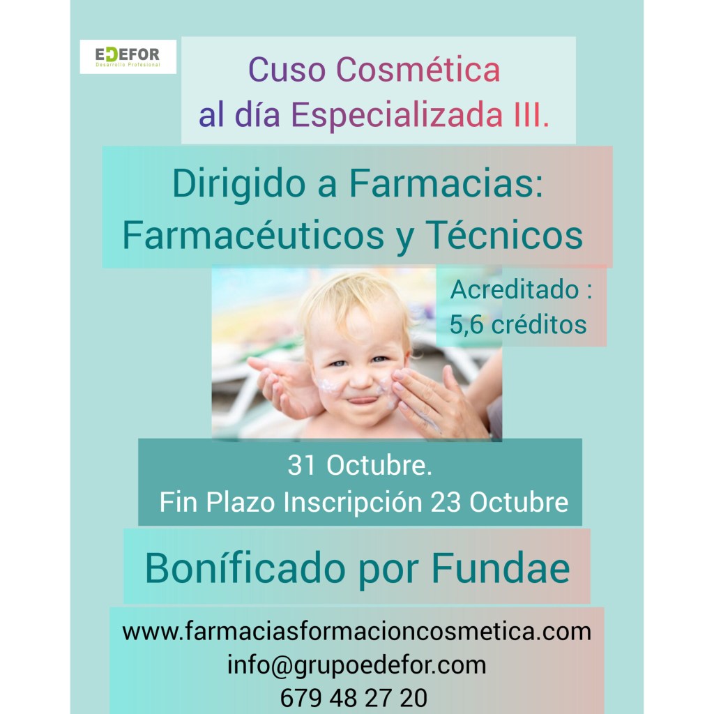 COSMÉTICA ESPECIALIZADA DIRIGIDO A FARMACIAS.31 Octubre 2023. Publicado porFarmacias Formación Cosmética14 de octubre, 202314 de octubre, 2023Publicado en Sin categoría Comparte esto: Compartir en X (Se abre en una ventana nueva) X Compartir en Facebook (Se abre en una ventana nueva) Facebook Me gusta Cargando... Relacionado Publicado por Farmacias Formación Cosmética Cursos de Formación de Cosmética dirigido a Farmacéuticos y Técnicos de Oficina de Farmacia Ver más entradas